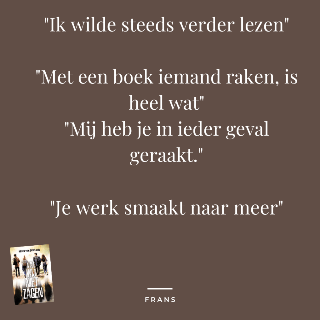 Ik kreeg een e-mail van een lezer met zo’n mooi onderbouwd oordeel over Wat Wij Niet Zagen, dat ik deze wel móet delen 😊: